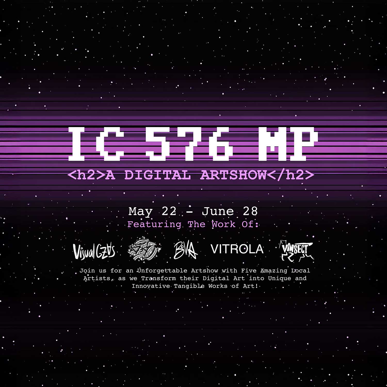 Join us for an Unforgettable Artshow with Five Amazing Local Artists, as we Transform their Digital Art into Unique and Innovative Tangible Works of Art!